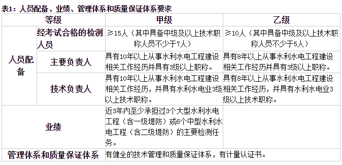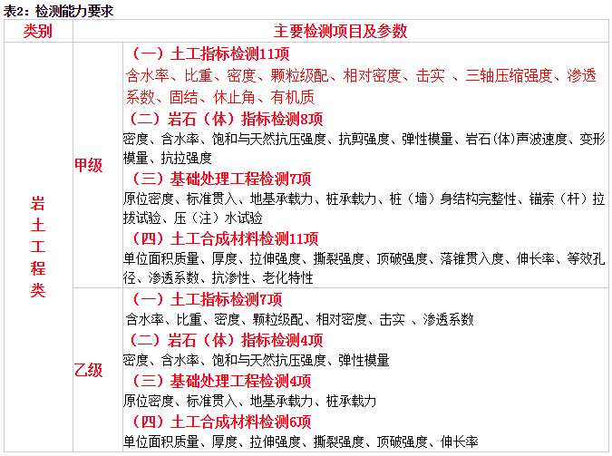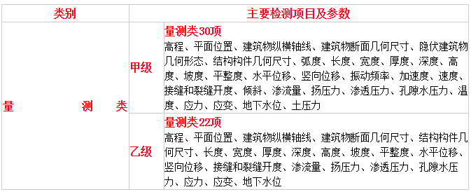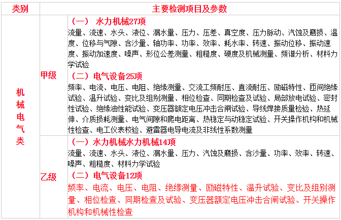 水利工程質(zhì)量檢測單位資質(zhì)分為巖土工程、混凝土工程、金屬結(jié)構(gòu)、機械電氣和量測5個類別,每個類別分為甲級、乙級2個等級
